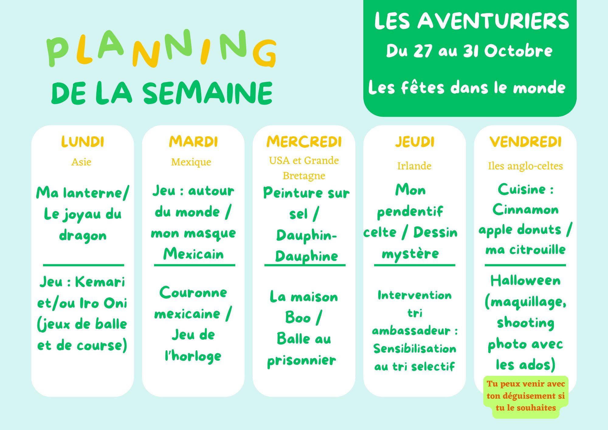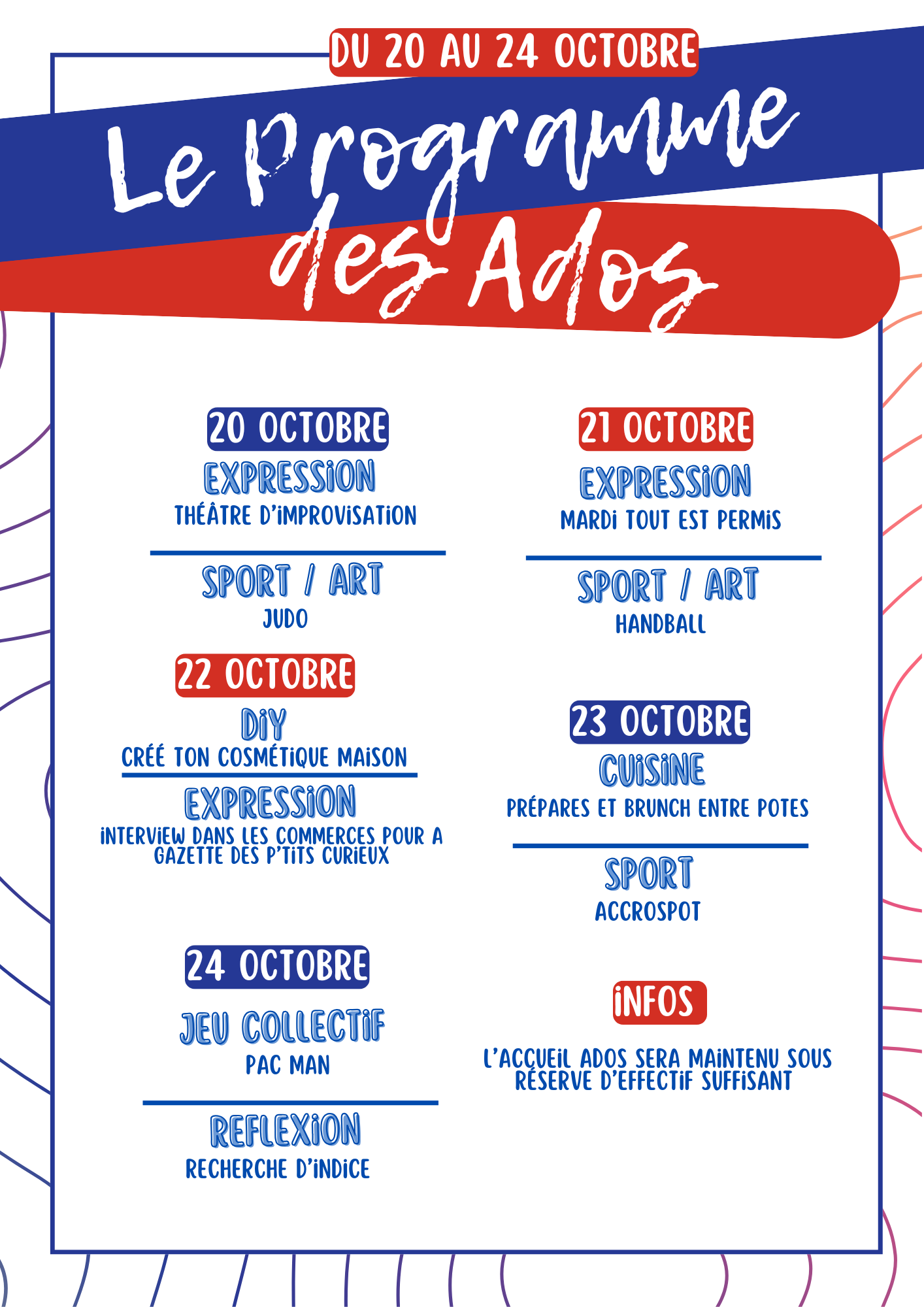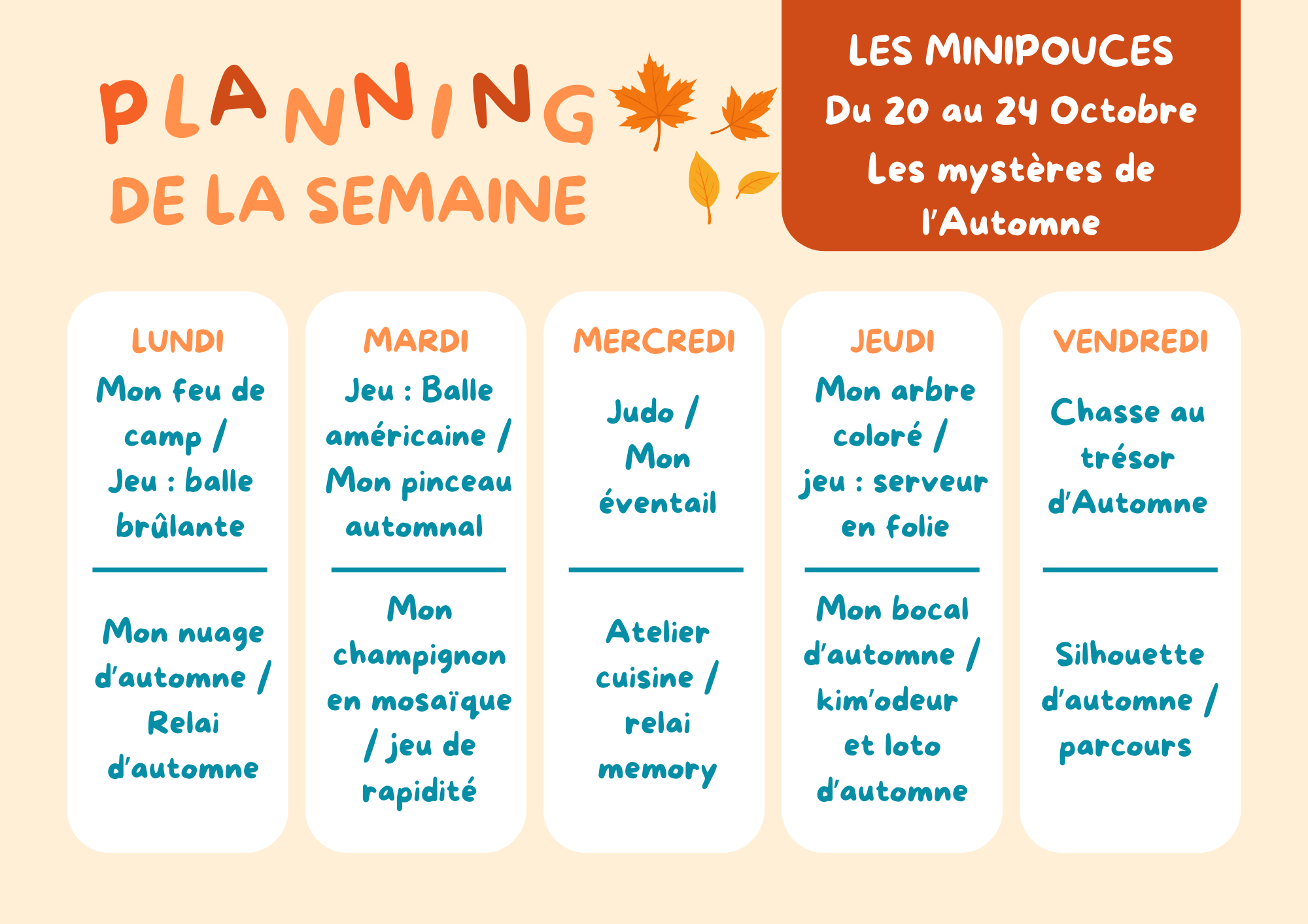 Les inscriptions pour les vacances de la Toussaint 2025 sont ouvertes selon le calendrier de réservation ci-dessous (sous réserve d’effectifs suffisants) :