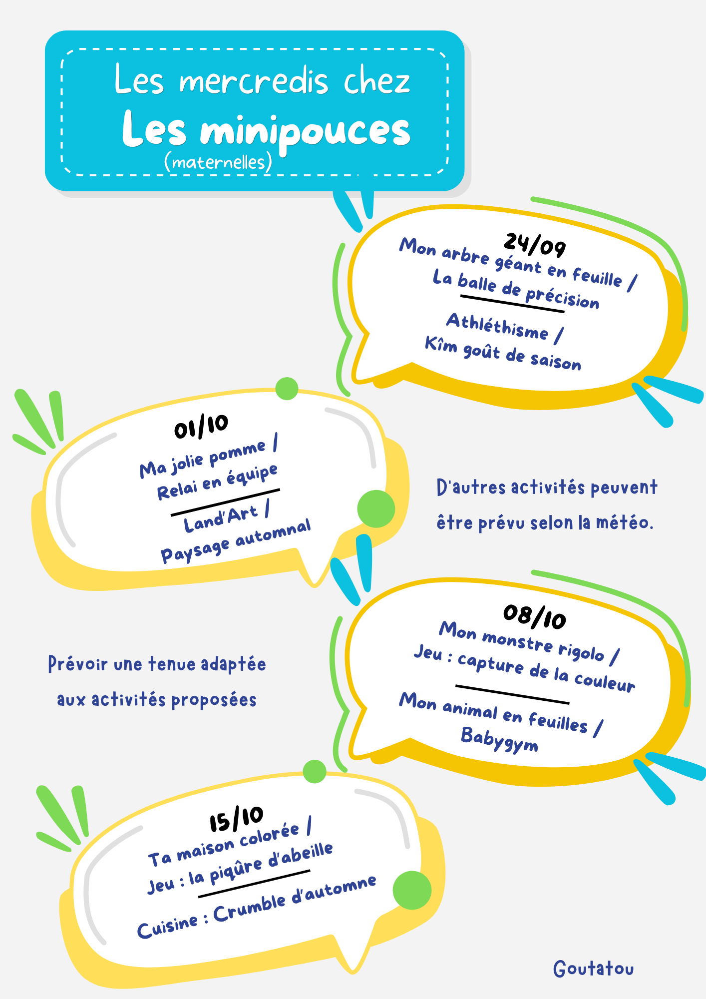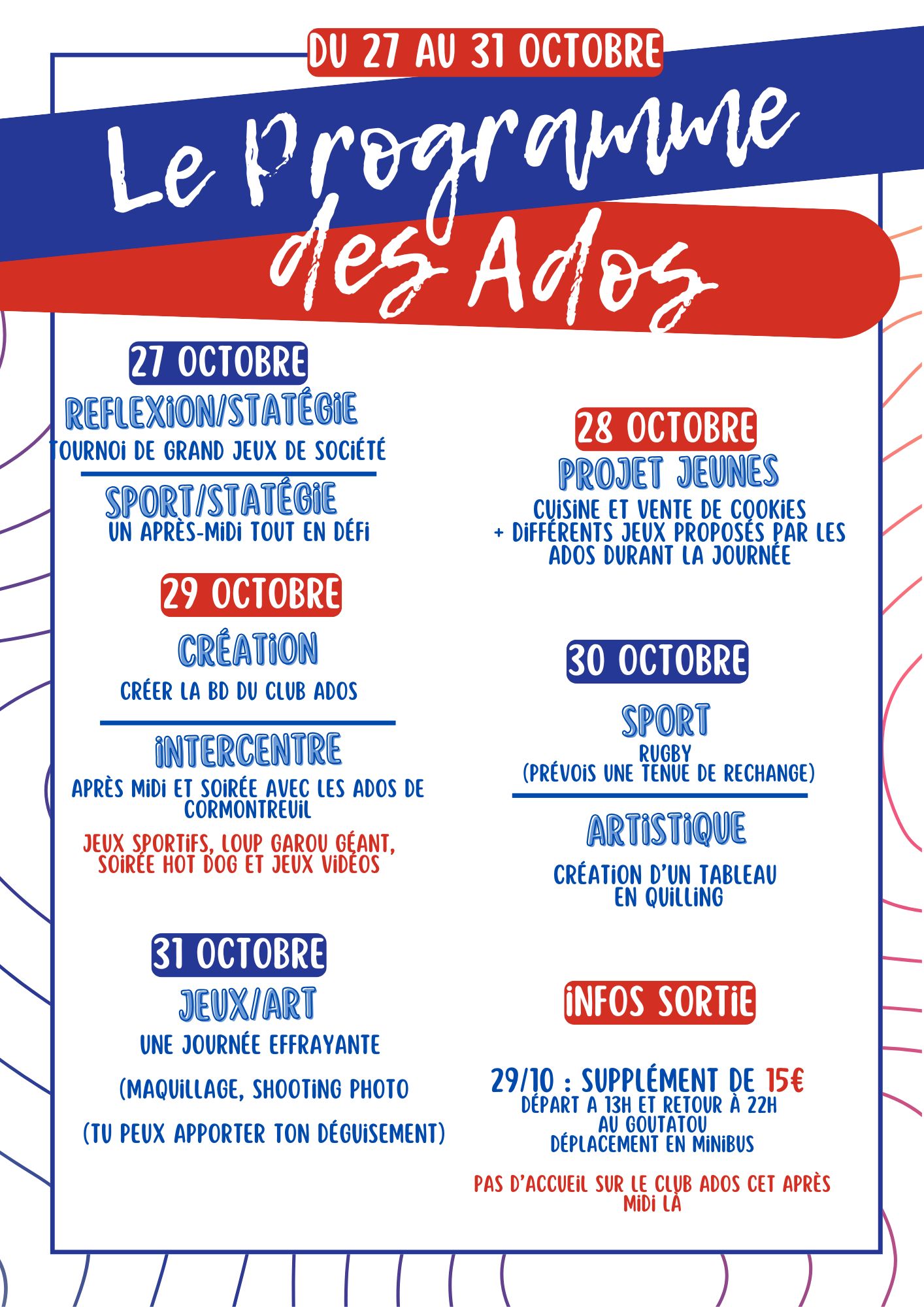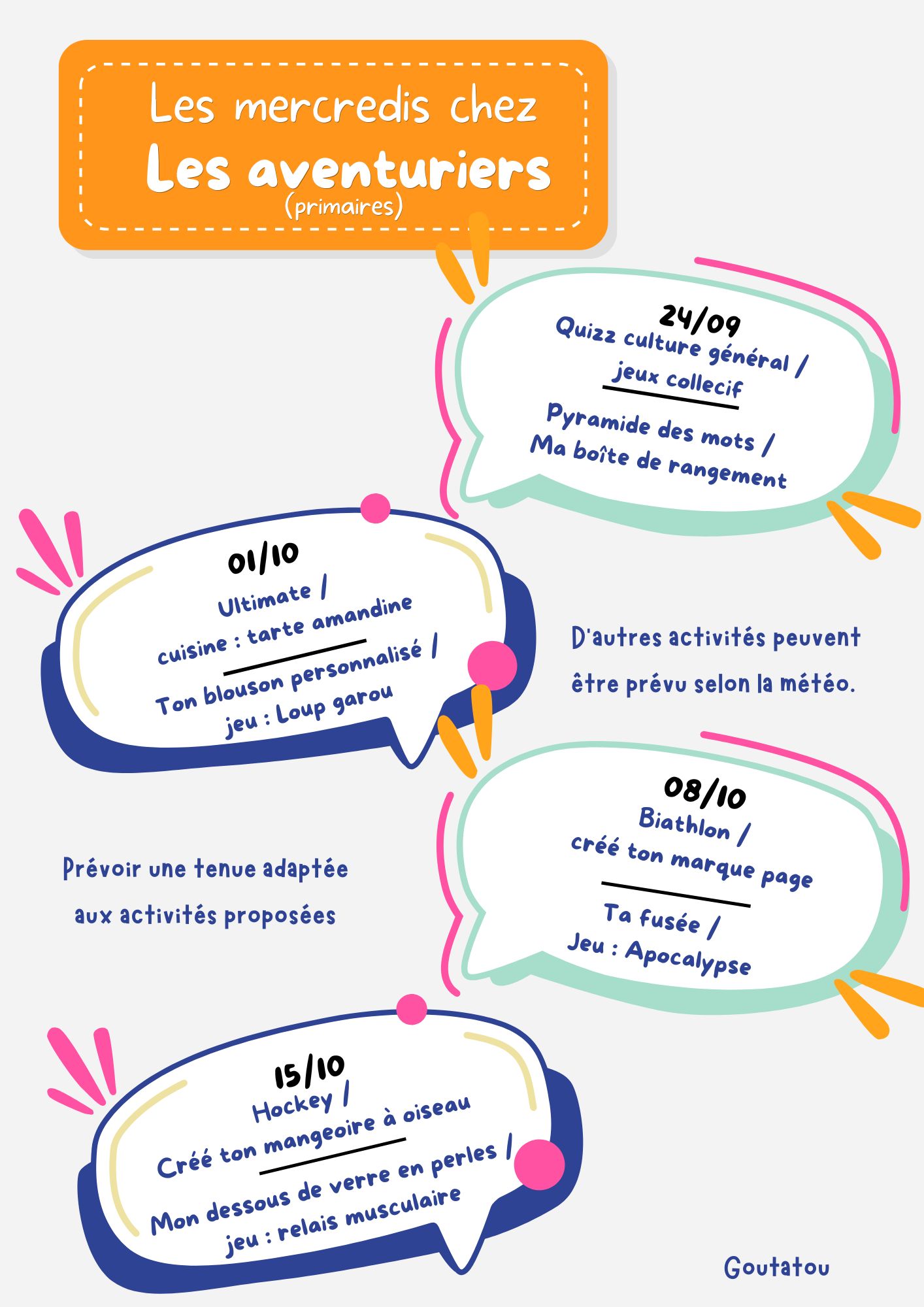 Les inscriptions pour les vacances de la Toussaint 2025 sont ouvertes selon le calendrier de réservation ci-dessous (sous réserve d’effectifs suffisants) :